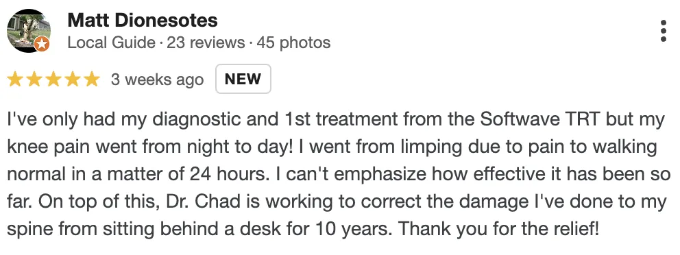 SoftWave™ Therapy is an FDA cleared non-invasive and drug-free treatment for inflammation, chronic pain and all joint issues.